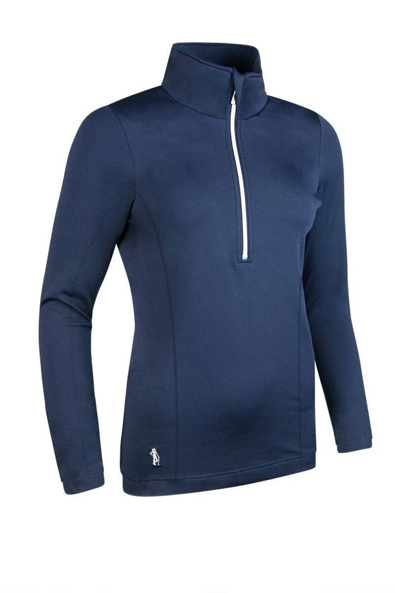 Ladies Zip Neck Shaped Panel Performance Golf Midlayer Navy