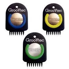 The GrooVtec Multi-Pin cleaner takes the repetition out of cleaning your golf club grooves by allowing you to clean up to 8 grooves simultaneously, effortlessly removing dirt and debris to maintain the optimal performance of your clubs. The handy device features 8 pins made from a durable plastic that are tough enough to withstand wear, yet, unlike metal equivalents, are soft enough to ensure that they do not scratch your clubs or damage your grooves,. The GrooVtec also includes a ball marker that is held in place by a pop-in, pop-out design that holds it securely while allowing you to easily detach it when needed. The device now features a retractable elasticated reel belt clip ensuring it is always at hand.